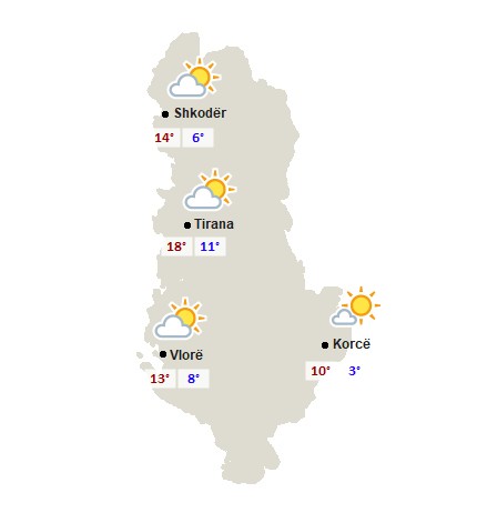 Deutschland Europa und Welt Temperatur Wetterzustand Höchsttemperatur Tiefsttemperatur Niederschlags-wahrscheinlichkeit Wind Sonnenauf/-untergang Albanien Dienstag, 16.12.2025 Heute Morgen Donnerstag Freitag Samstag Sonntag Wetter von